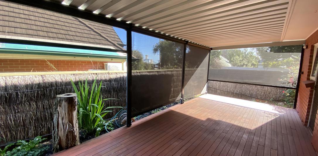 The gardens feature a gorgeous fully enclosed rear entertaining area with timber floors and pull up block out blinds so that the area can be utilised for year round BBQs. Safe, secure and easy to care for.